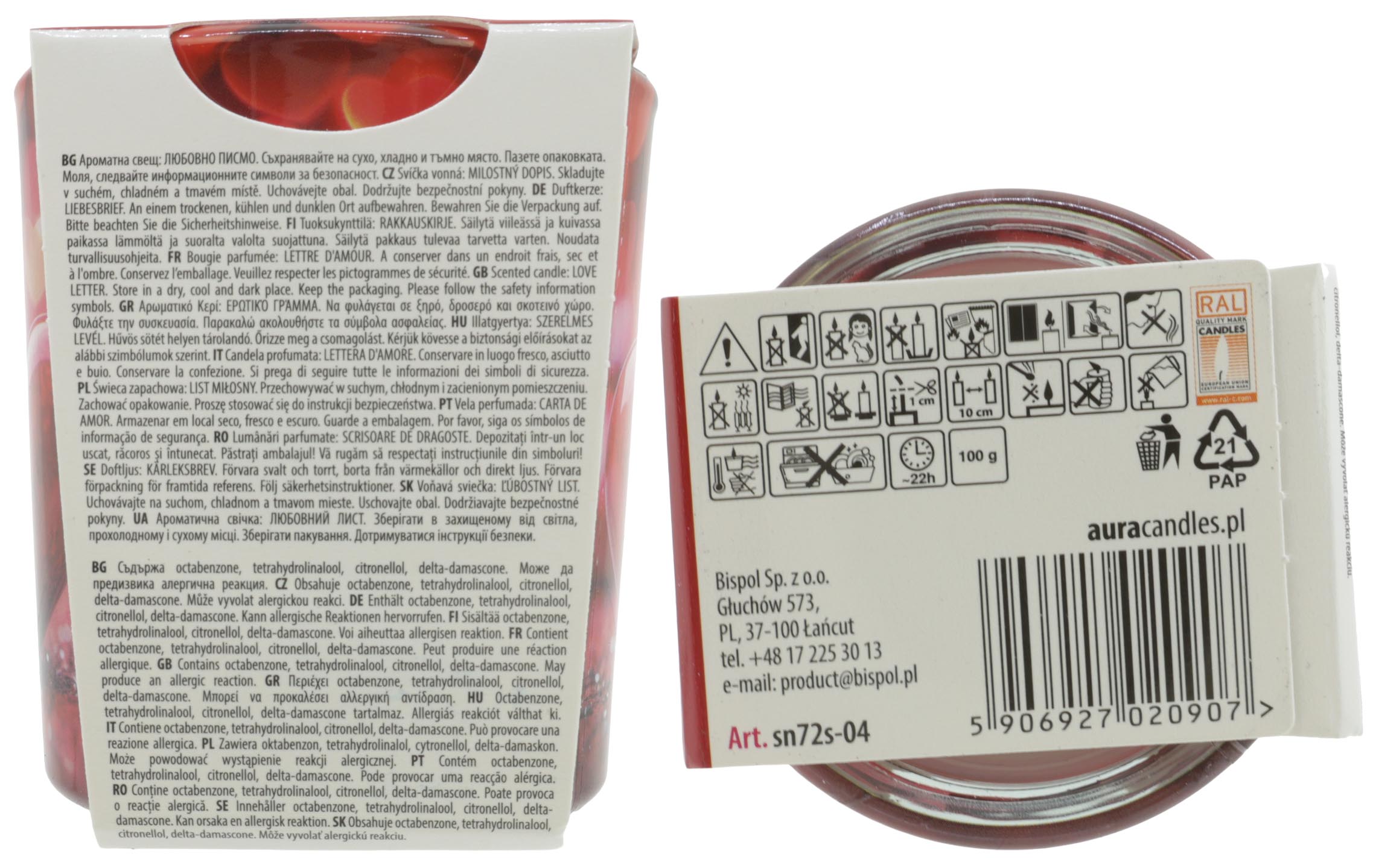 Duftkerze Motivglas 'Love' 100g Wachs 7x8cm